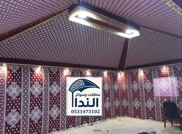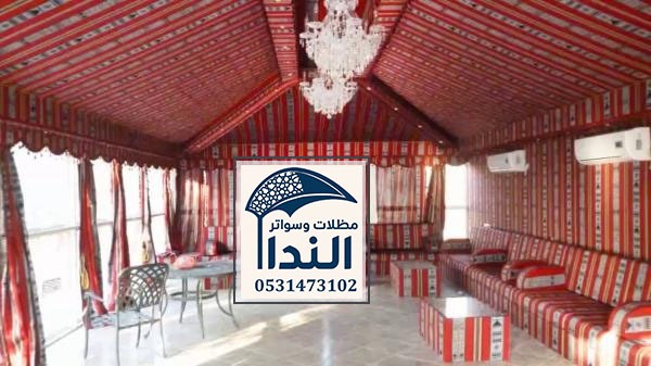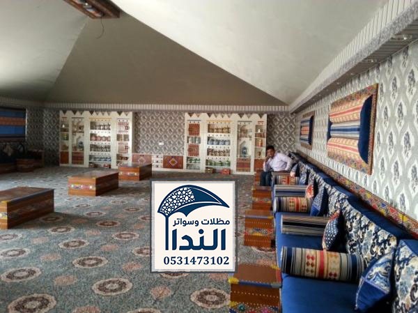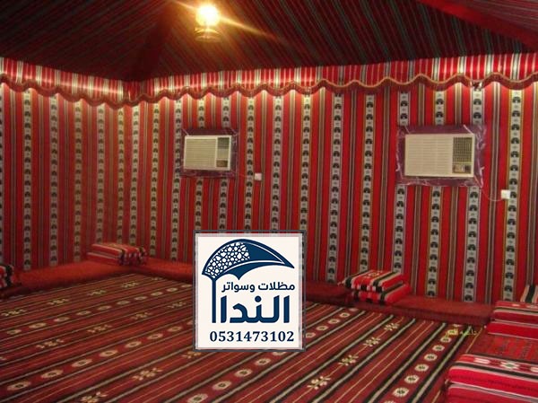 مواصفات بيت الشعر عازل مائي كوري – شعر مخطط نخبة أولى + غطاء من مادة PVC – ملتن – عازل حراري وطني – إرتفاع 2.5م أو حسب الطلب – شلش دائري قماش داخلي يتراوح سعر المتر بين 15-20 ريال – فرانشات – دناديش الأعمدة 8x8x1.25 ملي كورنيش على العقال الخارجي حسب الاتفاق – الصناديق20x20x1.25 ملي التيوبات2x4x1.25 ملي – المواسير1.5 بوصة x1.25 ملي – خشب سميك اندونيسي 9ملي – عمل واجهات زجاج فتحة الباب × فتحة المكيف الكهرباء + الالمنيوم + الفرش + الأرضيات على العميل فتحة شباك حسب الطلب.